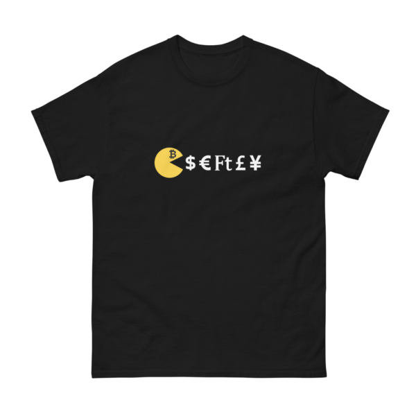 Legyen szó dollárról, euróról, fontról, forintról, a bitcoin szemében mind ugyanaz a nasi. Ez a póló játékosan utal erre. Ha szereted az egyszerű, mégis beszédes dizájnokat, ez a darab pont neked való.