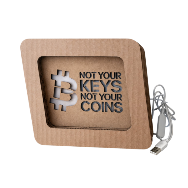 „Not your keys, not your coins” 💡– világító Bitcoin lámpa box