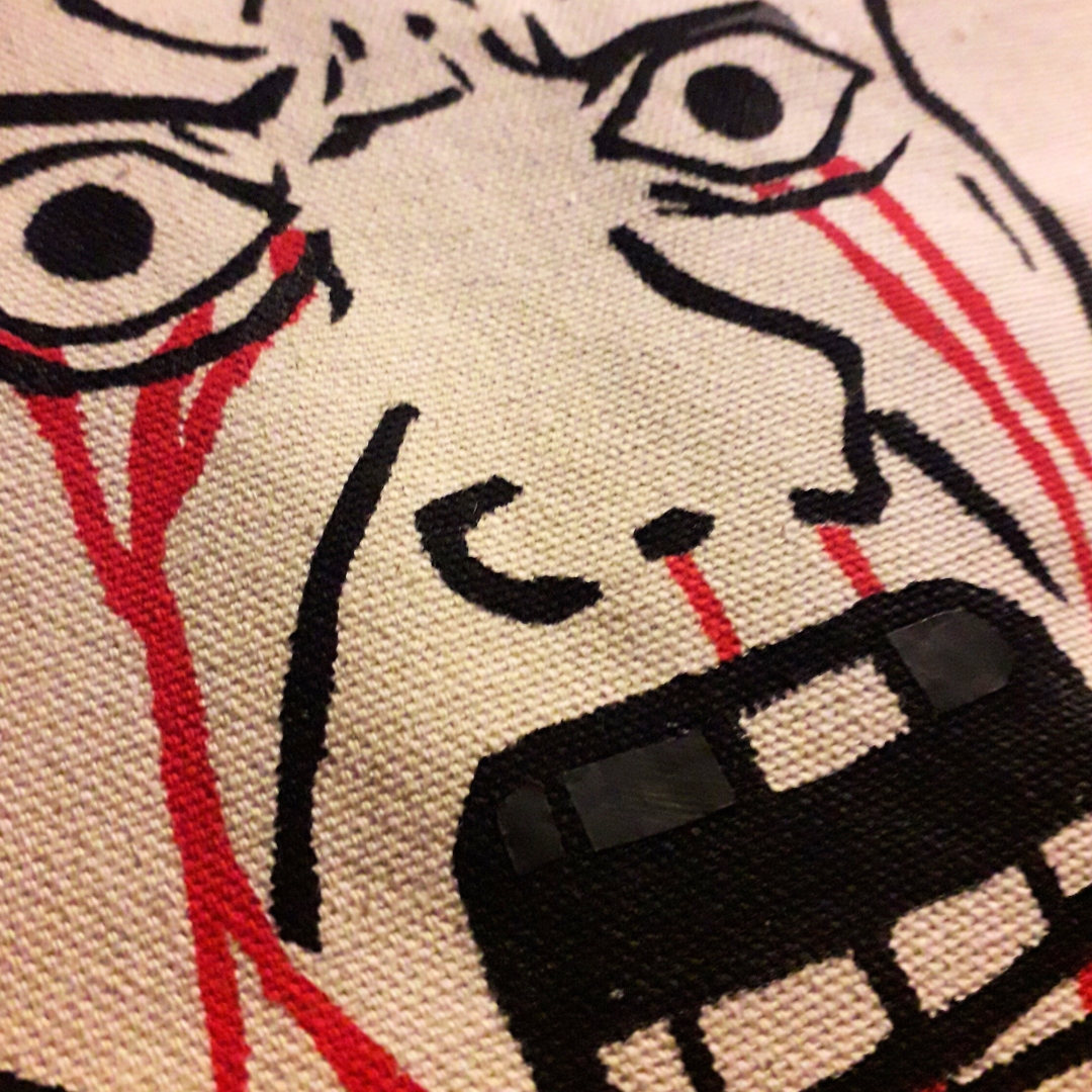 A dizájnt Chill Art stencil technikával készítette, több rétegű festéssel, így a vásznon egy kaotikusan vicces, mégis ikonikus meme kel életre. A festés magas hőfokon fixált, ezért a táska mosógépben is mosható (30 °C-on).